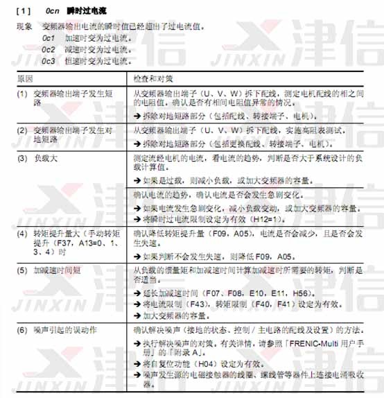 富士變頻器OC報警時,并不意味著一定是變頻器出現了故障,有可能是由于某些設定或者干擾導致,當然也有可能是由于部件異常,常見判斷故障原因和解決的步驟如下: