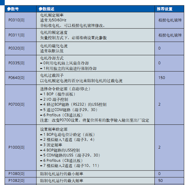 - P0100=0 ? ? ? 使用地區(qū):歐洲[kW],缺省值50Hz
