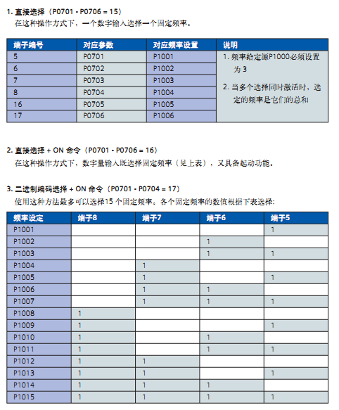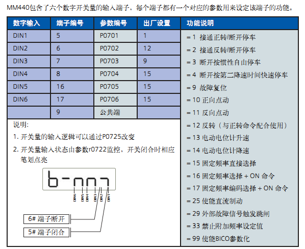 - P0703=1 ? ? 7號端子 ? ?數(shù)字輸入3的功能,ON/OFF1(接通正轉/停車命令1)